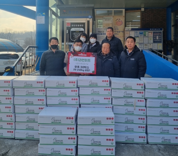 [금요저널] 과림동에 위치한 ㈜과연미트가 연말을 맞아 지역 내 어려운 이웃과 함께 나누고자 과림동 지역사회보장협의체에 우족 50박스를 후원했다.