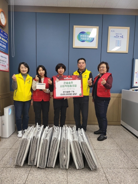 [금요저널] 정왕본동 행정복지센터는 지난 26일 큰솔송주사회적협동조합으로부터 지역 내 어려운 이웃의 따뜻한 겨울나기를 위한 전기장판 7개를 전달받았다.