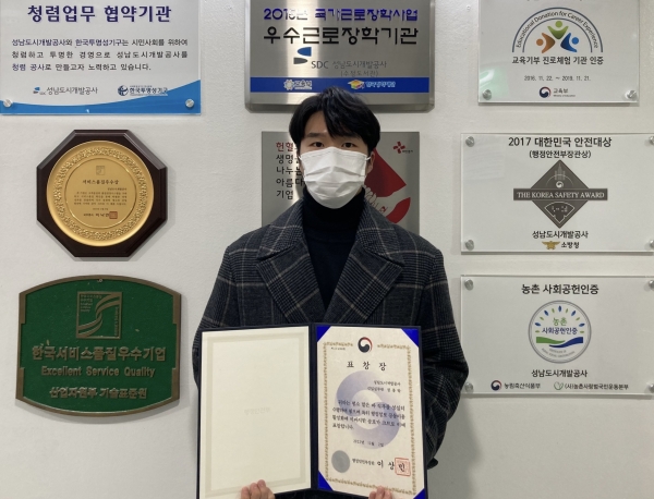 성남도시개발공사 정종탁 직원, 행정안전부 장관표창 수상