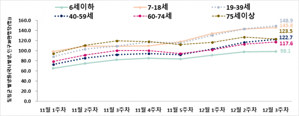 30-49세 연령대에서 전주 대비 일평균 발생률이 증가했다.