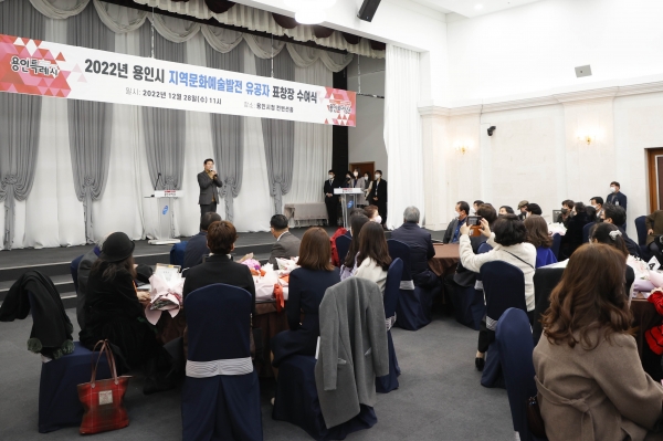 [금요저널] 용인특례시가 28일 용인시청 컨벤션홀에서 지역문화예술 발전에 기여한 유공자에 표창을 수여했다.