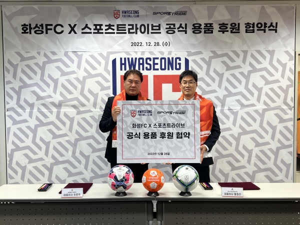 [금요저널] 화성FC가 2023년 ㈜스포츠트라이브와 2022년 12월 28일 화성FC 사무국에서 2023년 공식 용품 후원 협약식을 진행했다.