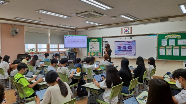 특히 일방적인 정보전달이 아닌 진로 미디어, 창업 주제 기반으로 마인드맵, 비주얼씽킹, 아이디어 토론, 실습 활동 등 급별 단계에 맞게 학생들이 직접 참여하고 상호작용하는 진로 탐색 및 설계 활동 경험에 중점을 두며 운영했다.