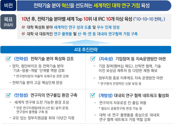 또한 10년 후, 세계적인 대학 혁신연구센터 10개 이상 육성을 목표로 꾸준히 지원해나갈 것이라고 밝혔다.