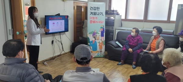 이번 교육은 방문간호사가 한파 상황을 대비해 겨울철 주의해야 하는 한랭질환 예방 수칙과 질환별 주의사항을 설명하고 건강한 생활 습관 및 적정 실내 환경유지, 외출 전 날씨 확인하고 따뜻한 옷 입고 외출하기 등 한파 대비 건강 수칙을 교육했다.