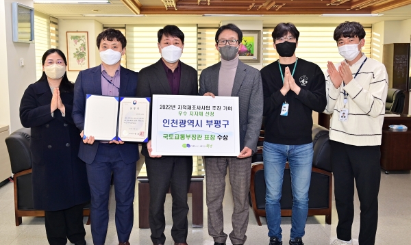 [금요저널] 부평구는 6일 2022년도 지적재조사사업을 적극 추진한 공로로 국토교통부 장관 기관 표창을 받았다.