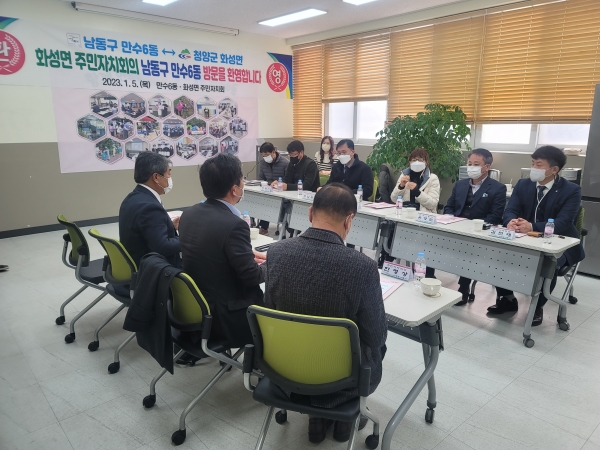 이번 방문은 자매결인지인 충남 청양군 화성면 주민자치회에서 주민자치회 전환과 관련, 선진지인 만수6동을 방문해 주민자치회 운영현황, 주민총회 과정, 주민참여예산사업 등을 공유하고 서로 논의하기 위해 마련됐다.