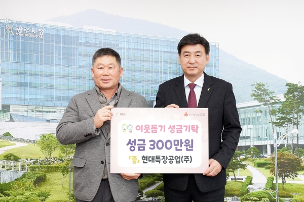 이에 앞서 지난 6일에는 재단법인 자하연 최선옥 대표가 성금 500만원을, 한국공인중개사협회 광주시지회 전재관 지회장이 성금 400만원을, 현대특장공업㈜ 장종기 대표도 성금 300만원을 전달했다.