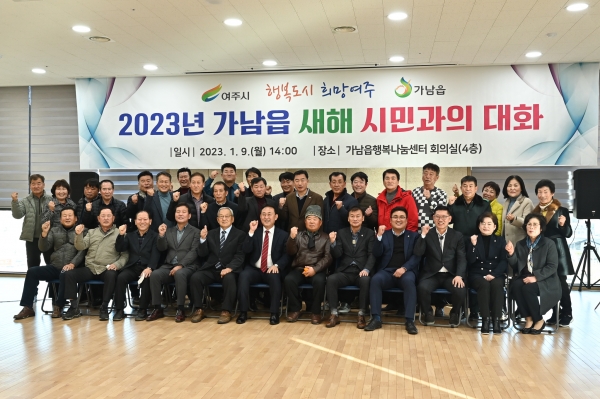 1월 9일 진행된 2023년 새해 시민과의 대화에서는 이충우 여주시장, 이복환 가남읍장, 서광범 도의원, 박시선 시의원, 경규명 시의원, 박두형 시의원, 이상숙 시의원 및 가남읍 기관·단체장과 이장들이 참석한 가운데 2023년 시정시책 설명, 가남읍 주요사업 설명, 시민과의 대화 시간을 가졌다.