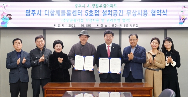 [금요저널] 광주시는 지난 10일 양벌우림아파트 입주자대표회의와 다함께 돌봄센터 설치장소 무상 임대협약을 체결했다.