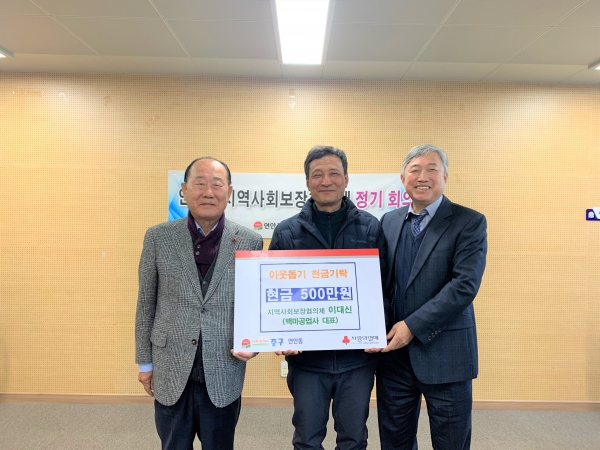 [금요저널] 인천 중구 연안동 행정복지센터는 지난 10일 연안동 지역사회보장협의체 이대신 위원이 계묘년 새해를 맞아 이웃돕기 후원금 500만원을 기탁했다고 밝혔다.