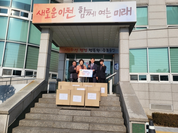 [금요저널] 이천시 소재 개미파출시스템가 김,떡,휴지,기름 등이 들어있는 생필품 10박스를 지난 1월 11일에 증포동행정복지센터에 전달했다.