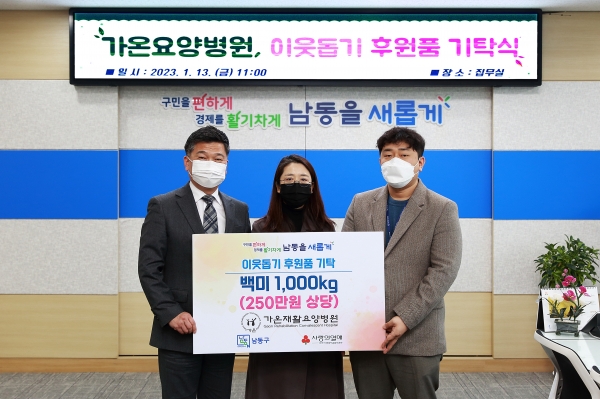 [금요저널] 인천시 남동구는 최근 가온요양병원으로부터 지역 내 취약계층 지원을 위한 백미 1,000kg을 기탁받았다고 16일 밝혔다.