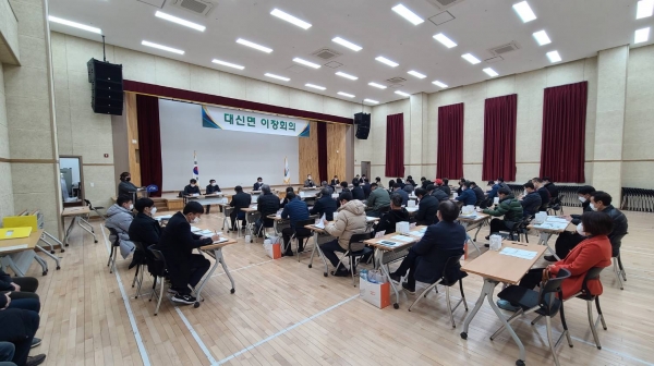 이날 회의에는 2023년 새해 시민과의 대화 대신면 문화복지센터 목욕탕 운영 2023년 공익직불제 관련 이장 대상 교육 2023년 비법정 현황도로 내 사유지 보상사업 2023년 새해농업인실용교육 등을 안내했다.