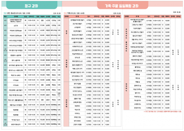 모든 강좌의 수강료는 무료이나 재료비는 자부담이다.