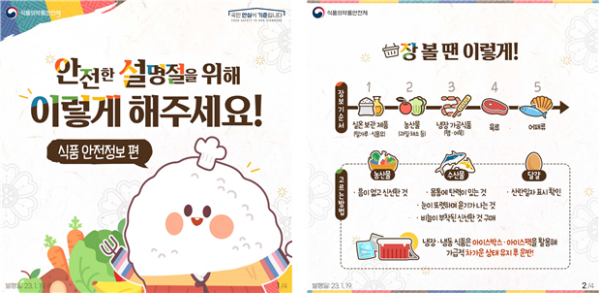 설 명절을 맞아 제공하는 식품 구매·조리·보관·섭취 요령과 안전한 의약품 사용 정보 등을 참고해 국민 모두 건강한 명절 연휴를 보내시길 바란다.