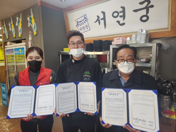 서연궁돼지갈비 식당에서는 동 행정복지센터에서 추천하는 저소득 취약계층 4가구에 매월 2회씩 음식을 후원하게 된다.