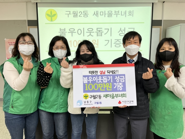 [금요저널] 인천시 남동구 구월2동 행정복지센터는 최근 동 새마을 부녀회로부터 어려운 이웃을 위한 성금 100만원을 전달받았다고 25일 밝혔다.
