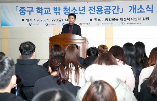 김정헌 구청장은 “이번 전용공간 조성을 계기로 중구청소년지원센터에서 풍성하고 질 높은 서비스를 제공하고 다양한 프로그램 개발 및 지역사회 연계 등을 통해 학교 밖 청소년들의 학업 및 사회진입을 위한 지원을 지속적으로 할 계획이라고 전했다”고 전했다.