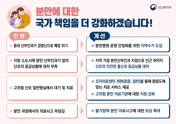모자 의료전달체계를 산모와 신생아의 위험도를 중심으로 개편해 안전한 분만과 치료를 돕는다.