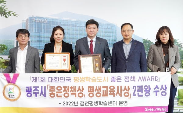 [금요저널] 광주시가 제1회 대한민국 평생학습도시 좋은 정책 어워드 시상식에서 ‘좋은정책상’과 ‘평생교육사’을 받아 2관왕을 차지했다.