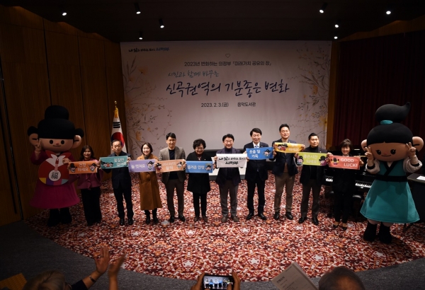 [금요저널] 의정부시 신곡1동행정복지센터는 2월 3일 음악도서관 뮤직홀에서 김동근 시장을 비롯한 국회의원, 도·시의원, 지역주민 등 100여명이 참석한 가운데 ‘2023년 시민과 함께 바꾸는 신곡권역의 기분좋은 변화’를 개최했다.
