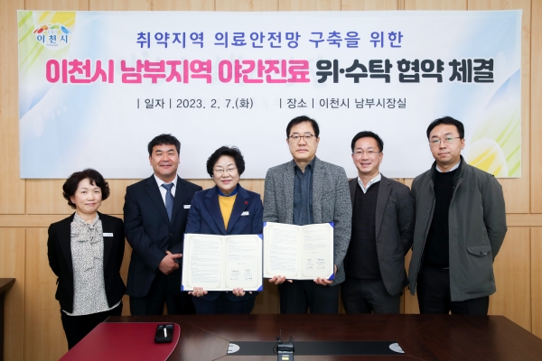 [금요저널] 이천시는 2월 7일 이천시 남부시장실에서 이천엘리야병원과 ‘이천시 남부지역 야간진료 사업’ 위·수탁 협약을 체결했다고 밝혔다.