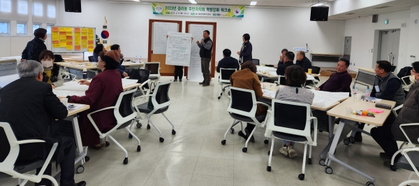 이번 워크숍은 기존 주민자치위원과 지난 1월 추가모집 공고기간 주민자치위원을 신청한 주민들이 참여했으며 지난해 중리동 주민총회를 통해 선정된 2023년 자치계획을 점검하고 구체적인 실천방안을 논의했다.