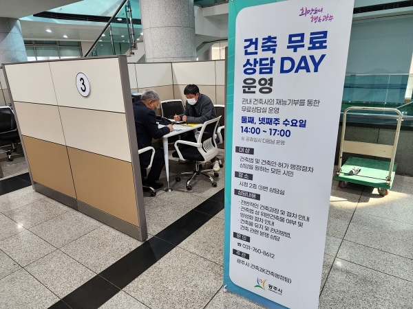 건축 무료 상담 서비스는 매월 둘째, 넷째 주 수요일 오후 2시부터 5시까지 시청 2층 3번 상담실에서 관내 건축사 22명의 재능기부를 통해 순번제로 돌아가며 상담을 진행하며 별도 예약 없이 방문하면 상담받을 수 있다.