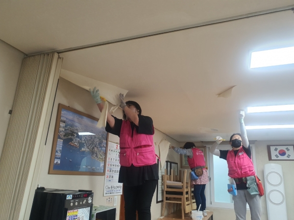 [금요저널] 인천광역시 중구여성회관은 도배기능사 자격증 봉사팀이 지난 10일 북성12통 경로당에서 도배 봉사활동을 펼치며 ‘따뜻한 중구 만들기’에 앞장섰다고 밝혔다.