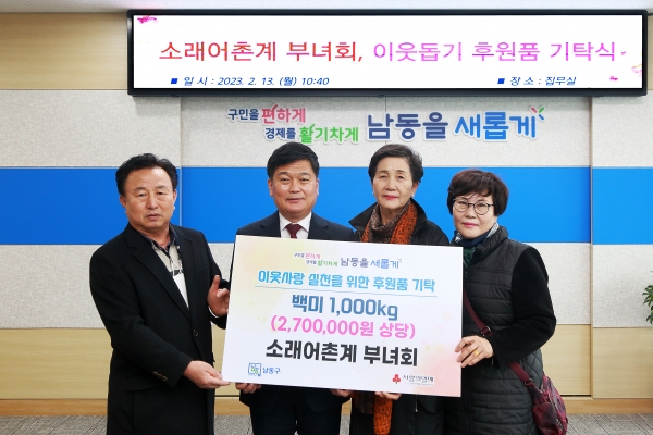 [금요저널] 인천시 남동구는 최근 소래어촌계 부녀회로부터 지역 내 취약계층 지원을 위한 백미 1,000kg을 기탁받았다고 14일 밝혔다.