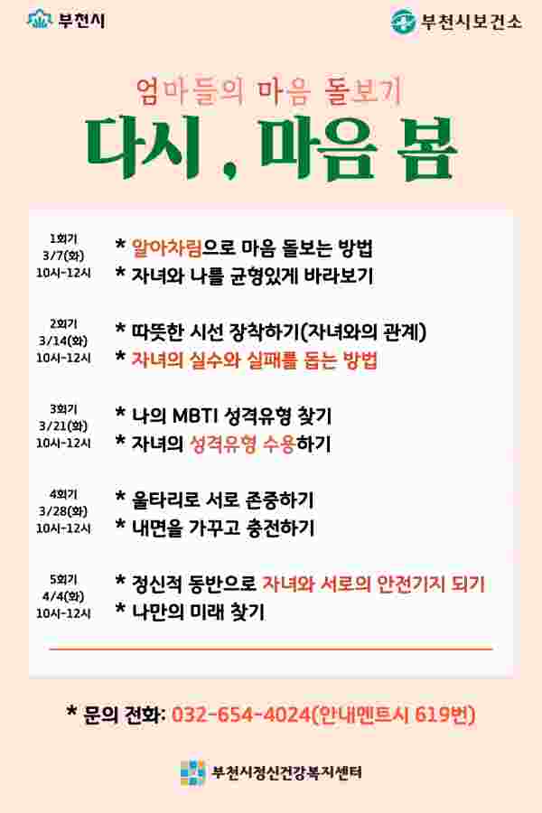 그 중 첫 번째로 육아기 여성을 위한 스트레스 관리 프로그램 ‘다시, 마음 봄’을 진행한다.