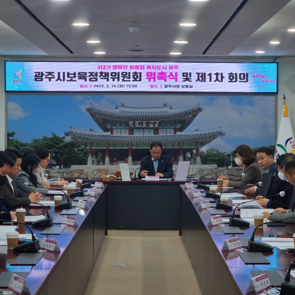[금요저널] 광주시는 지난 14일 시청 상황실에서 ‘2023년 보육정책위원회 위촉식 및 제1차 정기회의’를 개최했다.