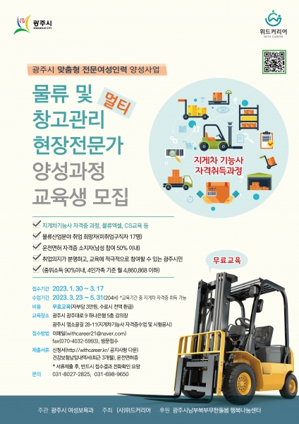 광주시, 지게차 기능사 자격증 과정 신청자 모집