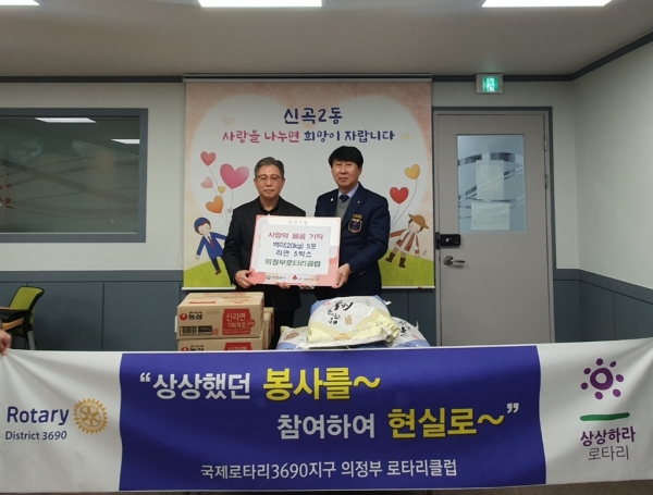 [금요저널] 의정부시 신곡2동주민센터는 2월 14일 의정부로타리클럽에서 저소득 취약계층을 위해 백미 100kg와 라면 5박스를 기탁했다고 밝혔다.