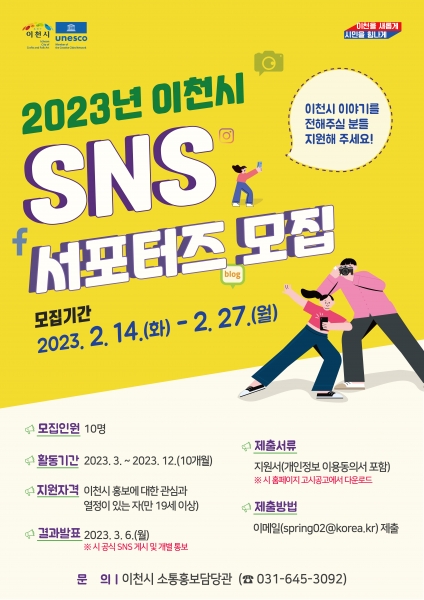 [금요저널] 이천시는 시민들과의 소통과 공감으로 더 친밀한 시정을 펼치기 위해 2023년 SNS 서포터즈를 모집한다.