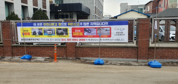 [금요저널] 포천시는 지난 2월 16일 장애인전용주차구역 상습 위반지역인 마홀수영장 주차장, 마홀축구장 주차장, 청계천복개공영주차장 등 6개소에 현수막을 게시해 주차위반행위에 대해 집중 홍보하고 있다.