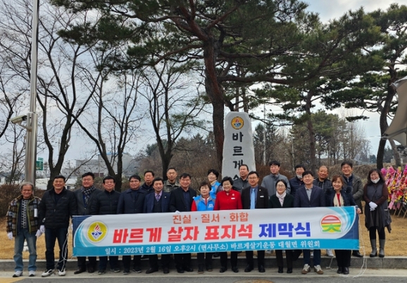이천시 바르게살기운동 대월면위원회는 2월 16일 대월면 달모람공원에서 김경희 이천시장, 김하식 이천시의회 의장 및 대월면 기관단체장, 회원, 마을주민 등 100여명이 참석한 가운데 ‘바르게 살자’가 새겨진 표지석을 제막했다.