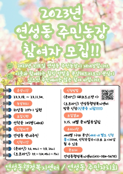 신청은 오는 3월 6일부터 3월 10일까지 온라인 및 연성동 행정복지센터 방문 신청으로 할 수 있다.