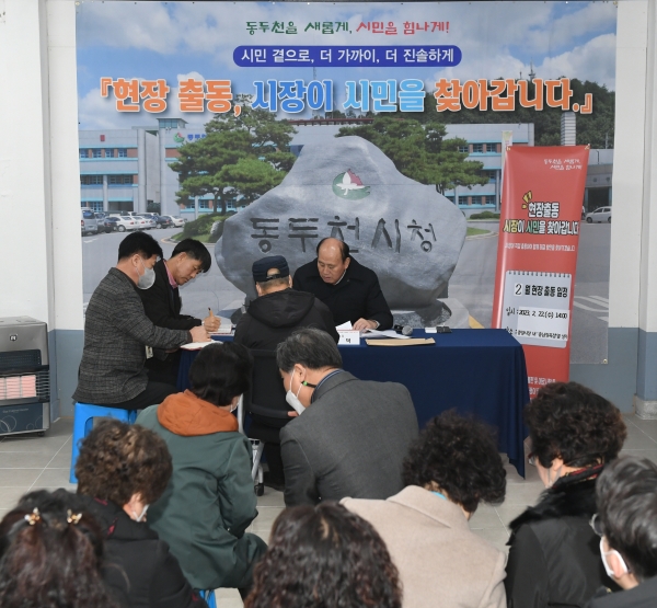 [금요저널] 동두천시는 지난 22일 중앙시장에서 2월 중 ‘현장 출동, 시장이 시민을 찾아갑니다.