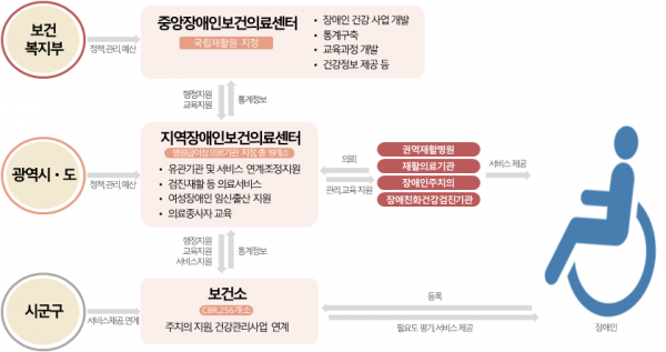 보건복지부는 2018년부터 장애인의 건강권과 의료접근성을 보장하기 위해 지역장애인보건의료센터를 설치하고 보건소 지역사회 중심 재활사업을 확대하고 있으며 지역센터와 보건소간 연계를 통해 맞춤형 장애인 건강통합서비스를 제공하는 관리체계를 구축해 나가는 중이다.