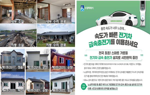 경기 수원시는 부지 협소 등의 이유로 전기차 충전시설 구축이 어려운 상황에서 주차와 동시에 충전이 가능한 가로등형 급속 전기차 충전기를 설치해 시민의 편익을 증진시켰다.
