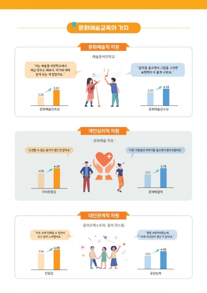 초등학교나 문화기반시설 등에서 활용할 수 있는 아동 특화 문화예술교육 프로그램 풀 데이터베이스를 구축하고 전략적으로 추가 개발할 계획이라고 전했다.