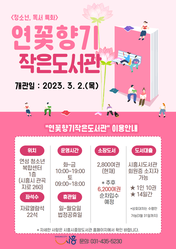 [금요저널] 시흥시 하상동 지역 내 최초 공공 독서문화시설인 ‘연꽃향기작은도서관’이 오는 3월 2일 연성청소년복합센터 내 1층에 개관한다.