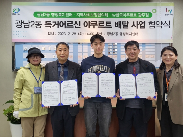 광주시 광남 2동 지역사회보장협의체는 hy광주점과 고독사 예방을 위한 “독거어르신 야쿠르트 배달 사업” 협약을 지난달 28일 체결했다.