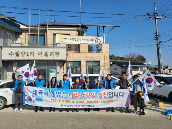 [금요저널] 평택시 서탄면 행정복지센터는 지난 27일부터 이틀간 제104주년 3·1절을 맞아 바르게살기위원회와 함께 ‘태극기 달기 캠페인’을 진행했다.