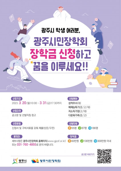 한편 광주시민장학회는 광주시의 출연으로 지난 1999년 설립돼 장학사업을 이어오고 있으며 인재 양성에 뜻이 있는 민·관·단체의 기부를 통해 장학금을 마련하고 있다.