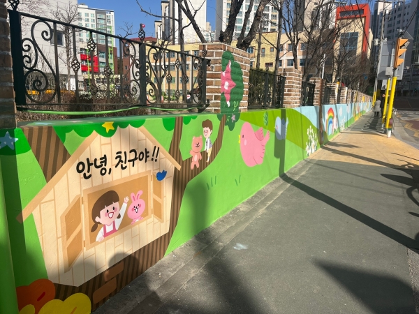 창전동 설봉초, 귀여운 담장 벽화로 새 단장 마쳐
