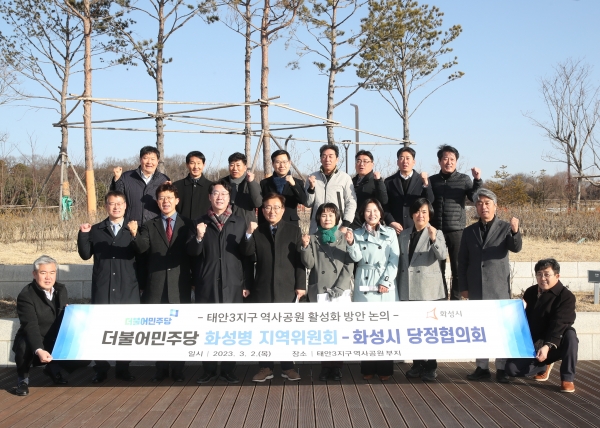 정명근 시장은 “공식적으로 진행되는 당정협의회 이외에도 수시로 지역위원회와 소통해, 지역발전을 위한 많은 의견들이 공유되길 바라며 태안3지구 역사공원이 정조의 효심을 느낄 수 있는 곳으로 재탄생될 수 있도록 모두가 함께 노력하겠다”고 했다.
