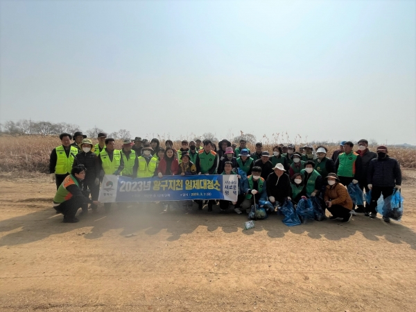 [금요저널] 평택시 서탄면 행정복지센터는 지난 7일 국가하천인 황구지천 일대 일제 대청소를 진행했다.